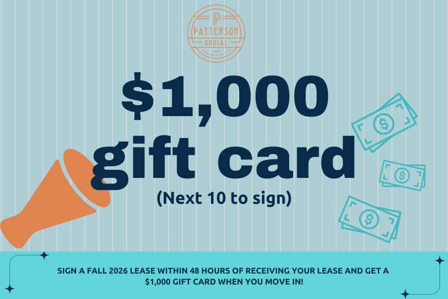 Reach out to our team to schedule an in-person or virtual tour, and experience the updated modern design and lifestyle of Patterson Social exactly the way you want.